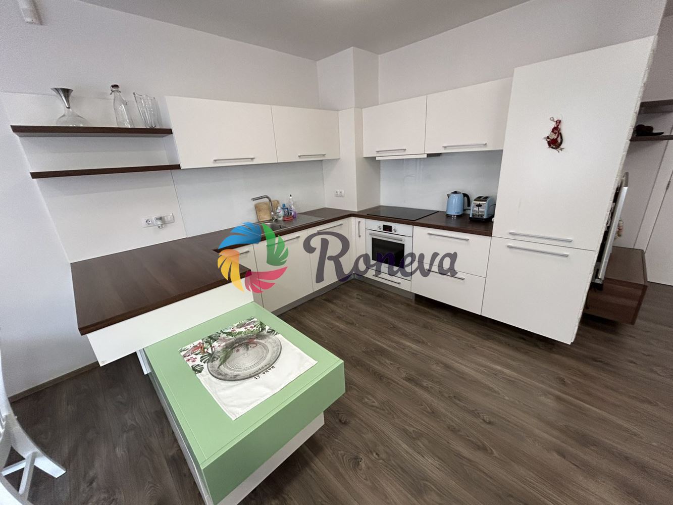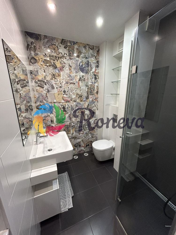 Проектът е изпълнени от професионален дизайнер, а мебелите изработени по поръчка с най-висок клас материали и механизми. Напълно готов, оборудван с всички удобства за едно домакинство, носещ посланието за уют и спокойствие. Банята разполага с подово отопление.