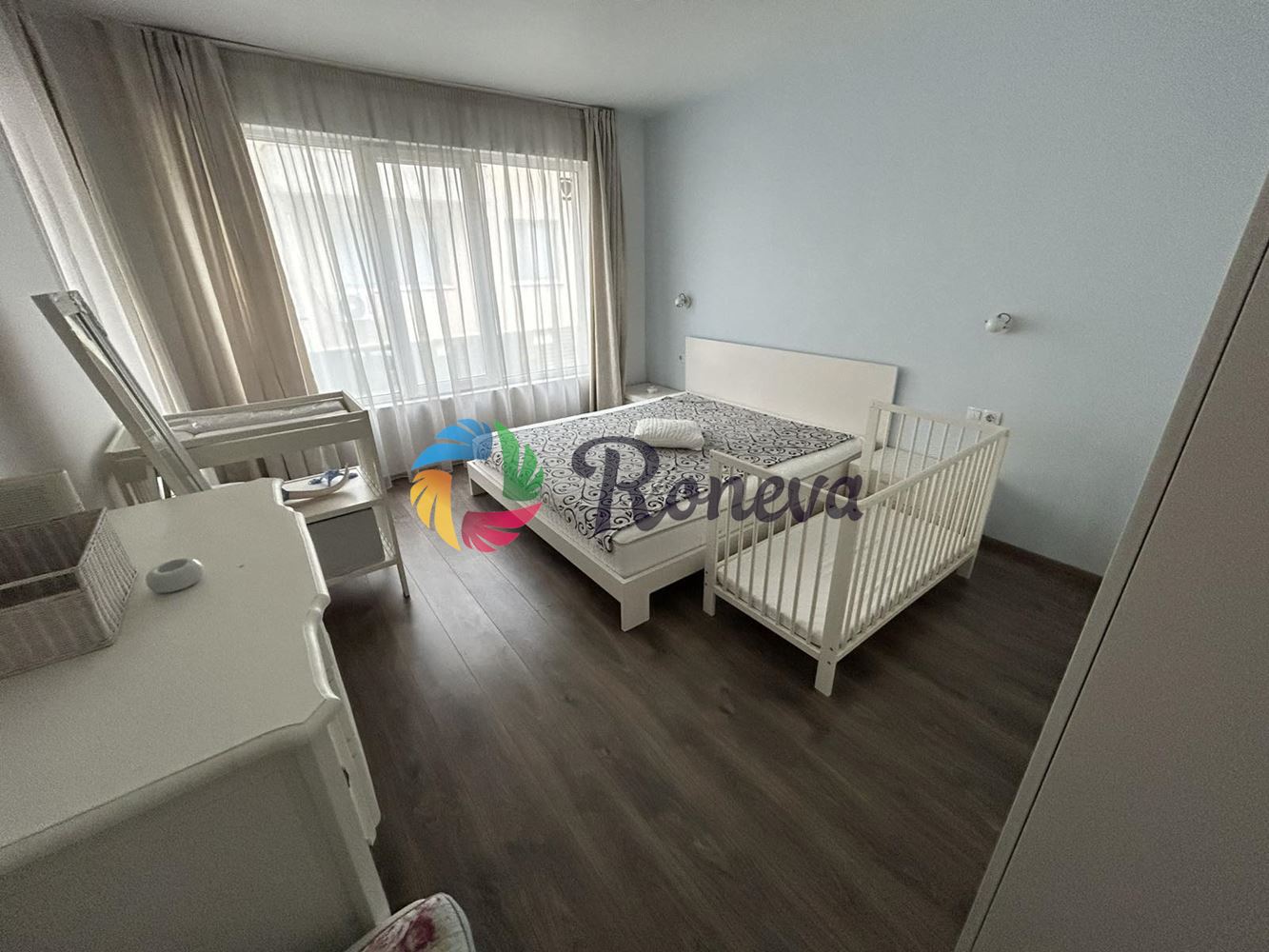 Имоттът се състои от голяма дневна с кухненски бокс, две спални, баня с тоалет, три тераси.