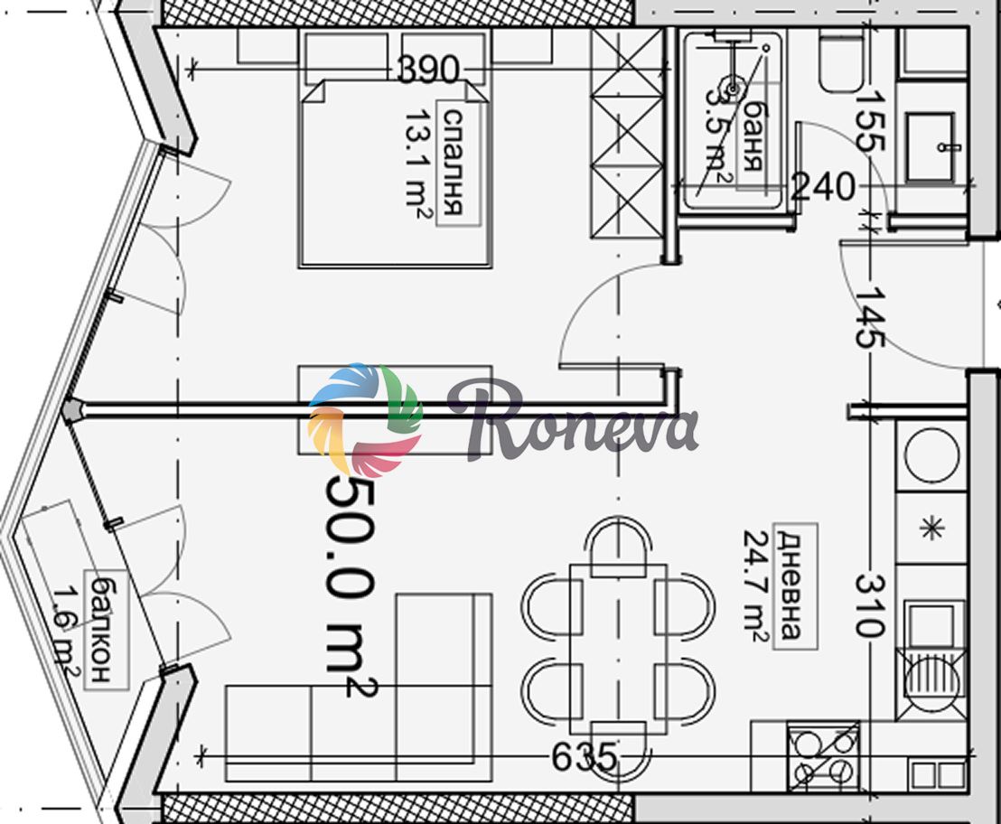 Агенция Ронева предлага двустаен апартамент, който е част от нов проект в кв. Владиславово - един от най-обновените и развиващи се райони на Варна. Апартаментът е разположен на четвърти жилищен етаж и състои от антре, дневна с кухненски бокс, уютна спалня, баня с тоалет в едно и тераса. Жилището е функционално, помещенията са светли без скосове. В сградата има налични едностайни, двустайни и тристайни апартаменти както и подземни паркоместа. Проектът съчетава модерна визия, комфорт и спокойствие. Жилищата се предлагат по БДС като за изпълнението на сградата ще бъдат използвани най-съвременни способи и висококачествени материали, съгласно последните изисквания и нормативи за устойчивост, топлоизолация и качество на живеене. Инвеститорът е предвидил три схеми на плащане в зависимост от индивидуалните възможности на клиентите. За удобство на жителите в кв. Владислав Варненчик има поликлиника, училища, детски градини, парк, различни по вид магазини и големи търговски вериги. Кварталът се обслужва от множество автобусни линии, което осигурява достъп до всички части на града. При избор на имот винаги може да разчитате на безплатна консултация от специалистите от РОНЕВА ООД. Предлагаме също така и съдействие за отпускане на банков кредит и помощ при сключване на сделки и подготвяне на нужната документация. ОФЕРТА №80285 www.roneva.bg Област: Варна Град: Владислав Варненчик 1 Детска площадка: Не Двор: Не Тераса: Не Асансьор: Да Площ: 59 Етаж на имота: 4 Етажи на сградата: 11 Брой спални: 1 Тип строителство: Тухла Степен на обзавеждане: Необзаведен Брой на стаите: 2 Брой на балкони: 1 Склад в апартамента: Не Екстериор: Не |