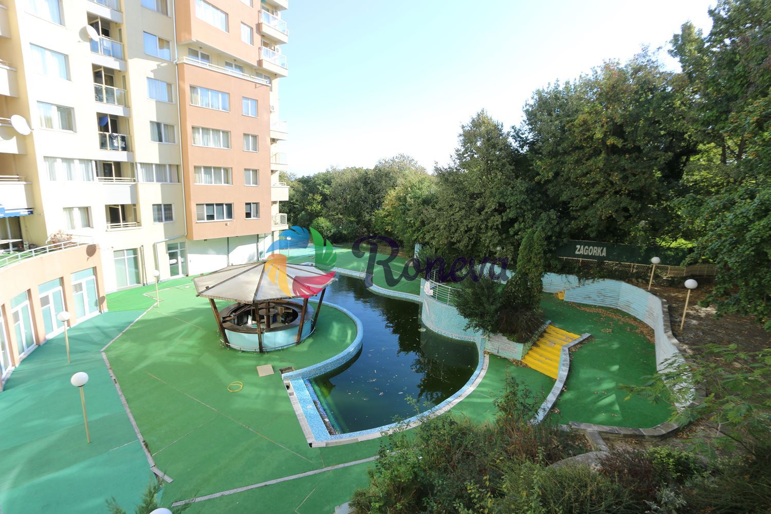 Апарт-хотел Никея парк, намиращ се далеч от шумния и пренаселен център на курорта Златни пясъци, е разположен сред приятен парк с дървета и зеленина, източник на свежест и прохлада и през най-горещите летни дни.