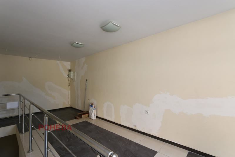 Първо ниво: търговска част 50 кв.м. ,склад, офис и санитарно помещение.