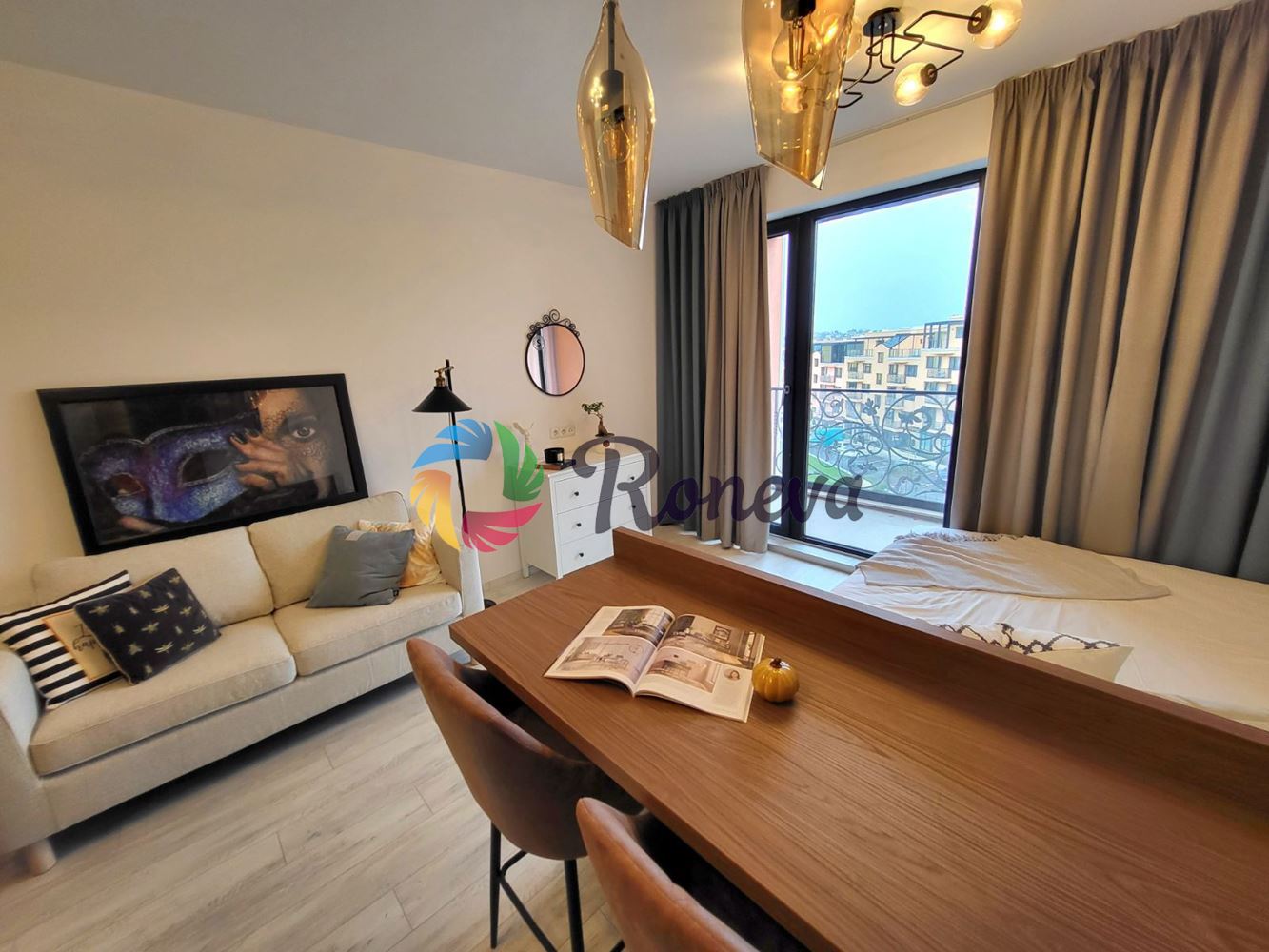 предлагаме ви едностаен апартамент на среден етаж под наем в района на св.св Константин и Елена в чудесен затворен комплекс. Модерният комплекс предлага 24-часова охрана,видео наблюдение и контролиран достъп. Жилището се състои от входно антре, спалня, кухненски бокс, тераса, баня и тоалетна. Добре обзаведен с всичко неубходимо. Има възможност за паркомясто срещу допълнително заплащане.Таксата за поддръжка на комплекса е включени в цената. Отдава се дългосрочно. За повече информация или оглед се обадете на посочения телефон. Реф. номер:10006