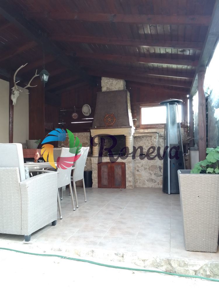 КЪЩАТА е обзаведена с качествени мебели, висок клас дограма, естествен паркет. Третият етаж е с мебели от естествено дърво, камина е облицована с естествен камък.