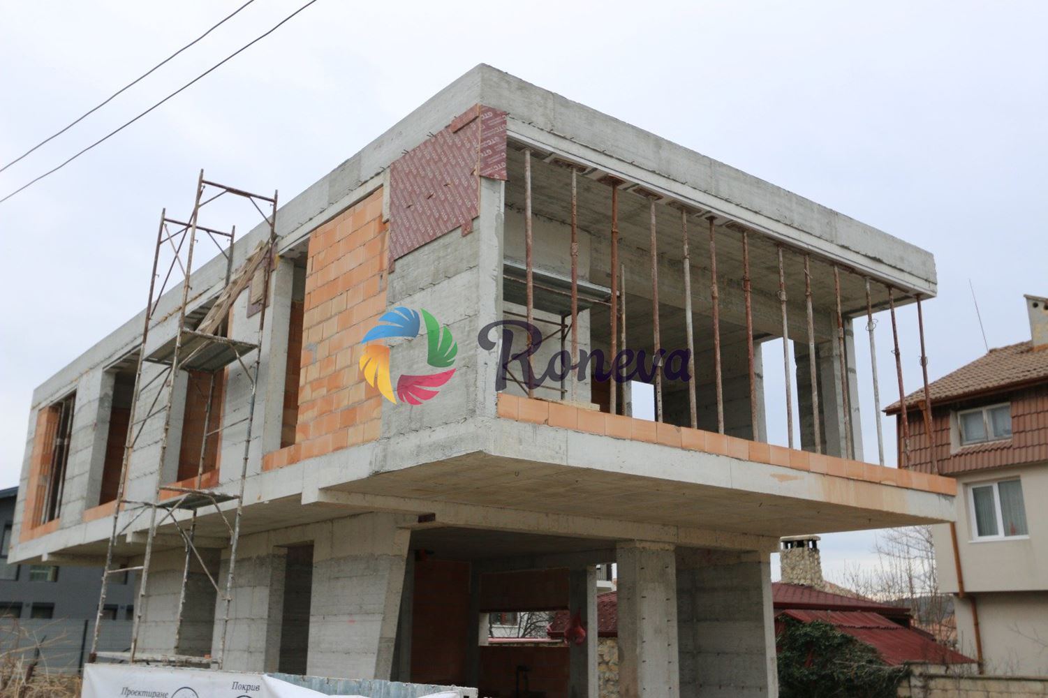 Къщата ще бъде построена с най-висок клас строителни материали: дограма с четворен стъклопакет, видео-домофона система, ключове, контакти и гранитогрес от Италия, подово отопление на двата етажа.