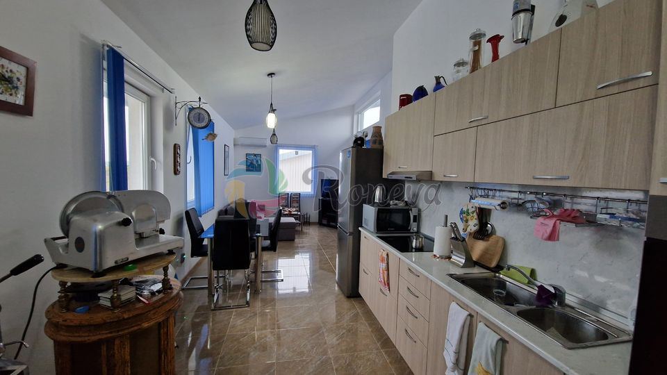 Състои се от три спални, обширен дневен тракт с кът за хранене, две бани и тоалетни, и се продава с всички електроуреди от снимките.