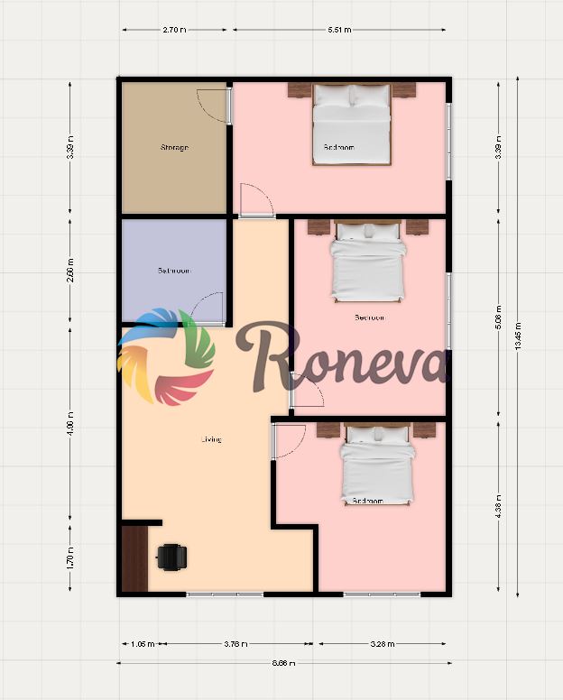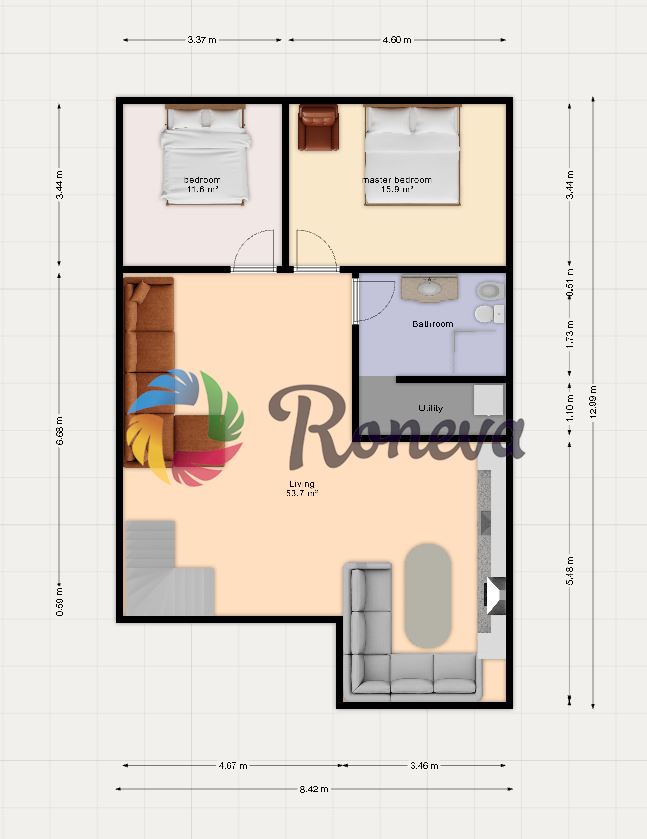 - **2 Бани с тоалетни**: , осигуряващи удобство и ефективност и възможност за изграждане на допълнителни мокри помещения.