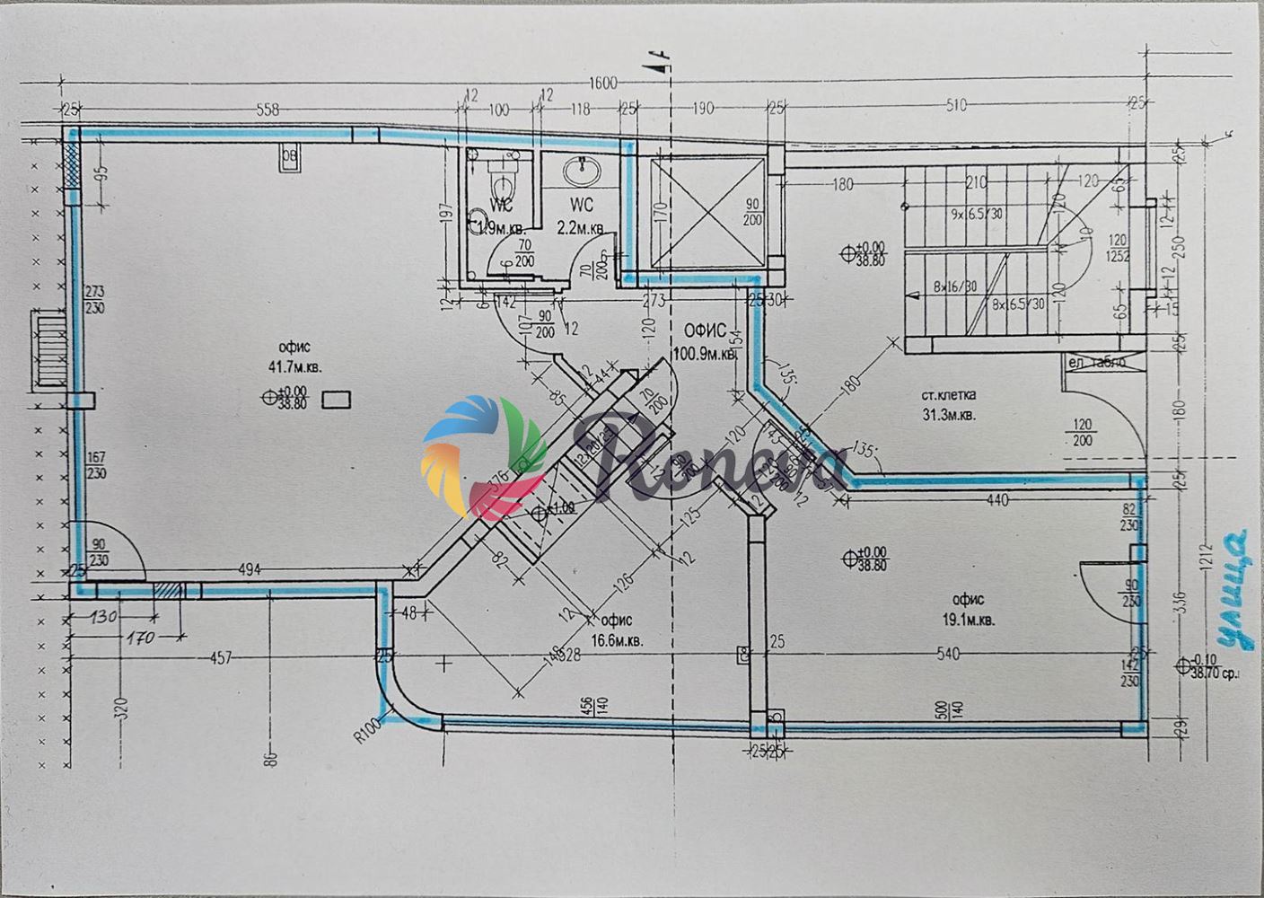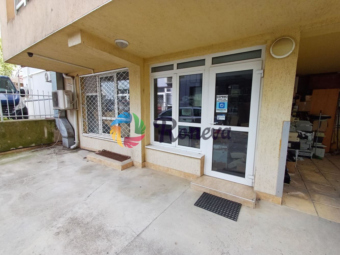 Офис с магазинна част с лице към оживена улицата, създавайки функционално и удобно работно място.