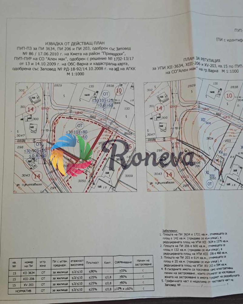 Имота е с правоъгълна форма ,ъглов с лице на два пътя с морска панорама .