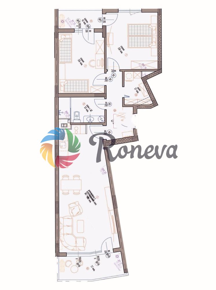 Продава тристаен апартамент в нова сграда с разрешително за ползване със следното разпределение : коридор , просторна дневна 31 м2 ,две големи спални ,баня с тоалет ,килер ,две тераси . Изложение югозапад ,изток. Апартаментът е среден с правилни форми на стаите .