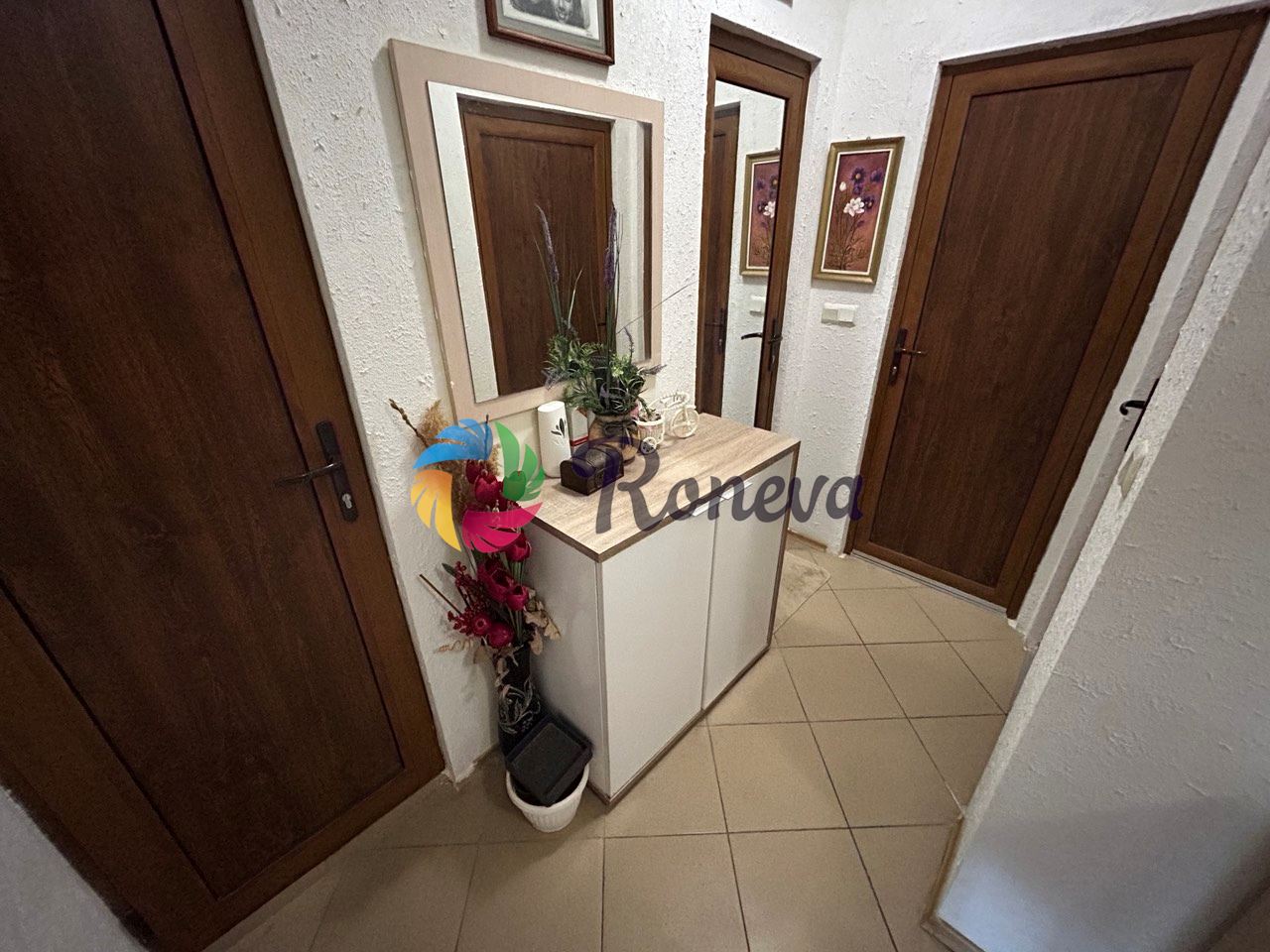 Уважаеми клиенти, представяме ви ТРИСТАЕН апартамент намиращ се в района на Траката. Жилището е ситуирано в малка сграда с контролиран достъп и със само 8 апартамента, което допълнително гарантира и повече спокойствие. Територията на сградата е от затворен тип, разполага с басейн и обособен кът за отдих за всеки от апартаментите. Достъпът е изцяло по асфалтиран път. Самият апартамент е напълно обзаведен и разполага с дневен тракт, родителска спалня с частична гледка море, детска спалня с излаз на остъклена тераса, отделни баня и тоалетна и коридор. Етажът е среден - втори от три. Към жилището има прилежаща изба. Продава се с подземно с широко и удобно за маневриране паркомясто - 20 000 евро. Таксата за поддръжка на комплекса е минимална. За повече информация и оглед се обадете на посочения телефон.