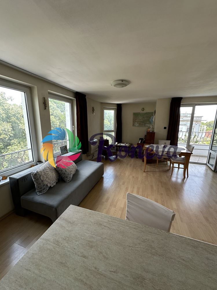 Предлагаме Ви под наем стилен, светъл и комфортен тристаен апартамент! Имотът е разположен на четвърти етаж от общо седем етажна сграда. Апартаментът е с площ от 106 кв.м, със следното разпределение: входно антре, дневна с кухня и трапезария, две спални, баня с тоалетна, тоалетна, голяма тераса.